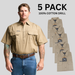 Kilcoy Mens Half Button Short Sleeve Work Shirt 5 Pack- Khaki