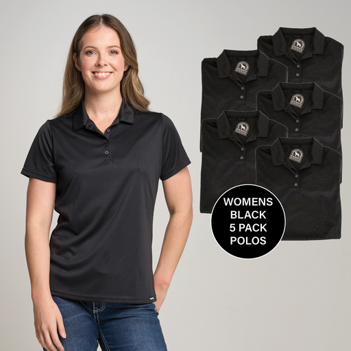 Check out our Tradie 5 Pack - Click HereStyle: OBC-WPS-500Product Description: Womens Polo ShirtColour: BlackAvailable Sizes: 8 – 24Contents: 100% ...